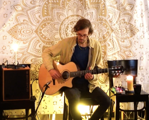 Remoji zaubert mit seiner Gitarre Klanglandschaften, die berühren und das Bewusstsein nach Innen lenken. Es öffnet sich ein Raum zum Ankommen und Eintauchen in den Fluss der intuitiven Klänge.
